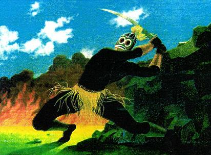 OGUN ES EL DIOS DEL HIERRO, LA GUERRA Y LAS FAENAS. EL ES EL DUEÑO DE TODA LA TECNOLOGIA, Y COMO ESTA TECNOLOGIA FORMA PARTE DE SU NATURALEZA, ES CASI SIEMPRE UTILIZADA PRIMERO EN GUERRAS. ASI COMO ELEGUA ABRE LOS CAMINOS, ES OGUN EL QUE LIMPIA LOS CAMINOS CON SU MACHETE. A OGUN SE LE RECONOCE EN EL NUMERO 7, Y SUS COLORES SON VERDE Y NEGRO.